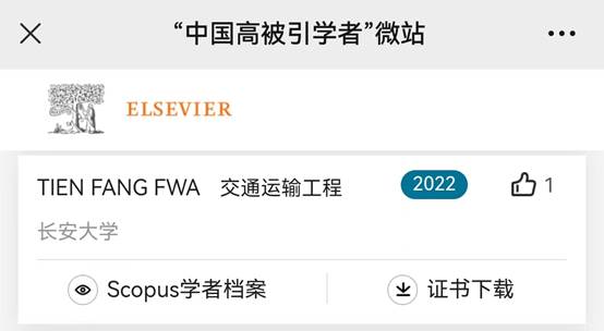 2023年3月28日,2022爱思唯尔“中国高被引学者(Highly Cited Chinese Researchers)年度榜单”正式发布。米兰·(milan)中国院长Fwa Tien Fang教授、执行院长孙健教授入选交通运输工程学科中国高被引学者榜单。