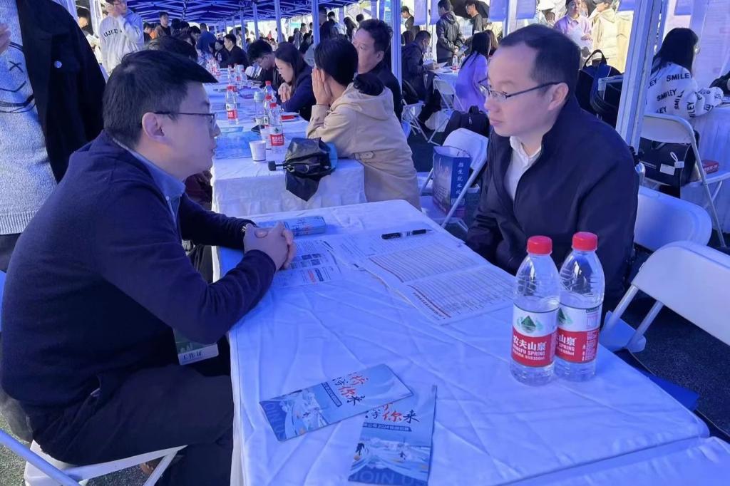 学院执行院长孙健,副院长汤颖颖、杨旭,在访企拓岗现场对在现场的学生进行指导与推荐,询问毕业生就业情况,为我院毕业生就业工作保驾护航。我院领导、老师还与各企业深入沟通交流,了解企业的用人需求与招聘原则,开拓就业资源,推进校企合作,为我院毕业生做出更精准的就业指导。