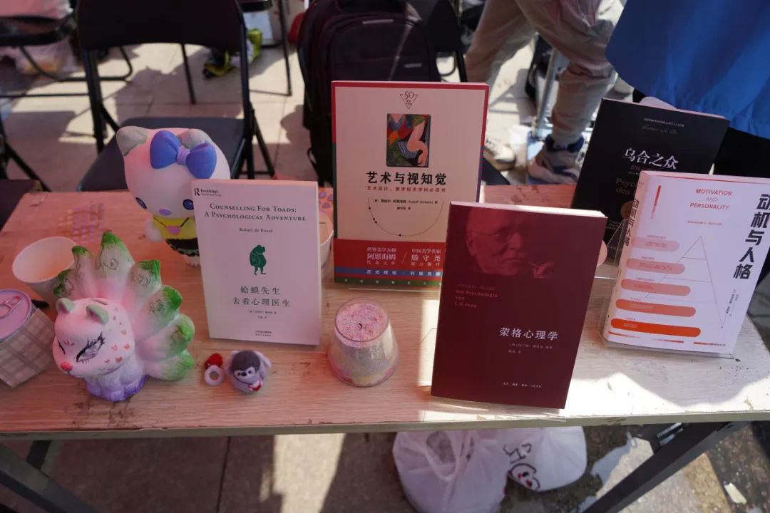在活动现场,我院以两块展板系统性、整体性展示心理育人工作成果,体现“五育融合”的工作理念。同时,通过张贴以往活动的照片,摆放优质心理书籍和往期“遇见心理学家”“古韵焕新颜”的精彩作品宣传我院彩虹心理协会特色活动。成果展示由点及面,拓宽了我院心理育人工作的覆盖面,进一步扩大我院彩虹心理协会的影响力与号召力。