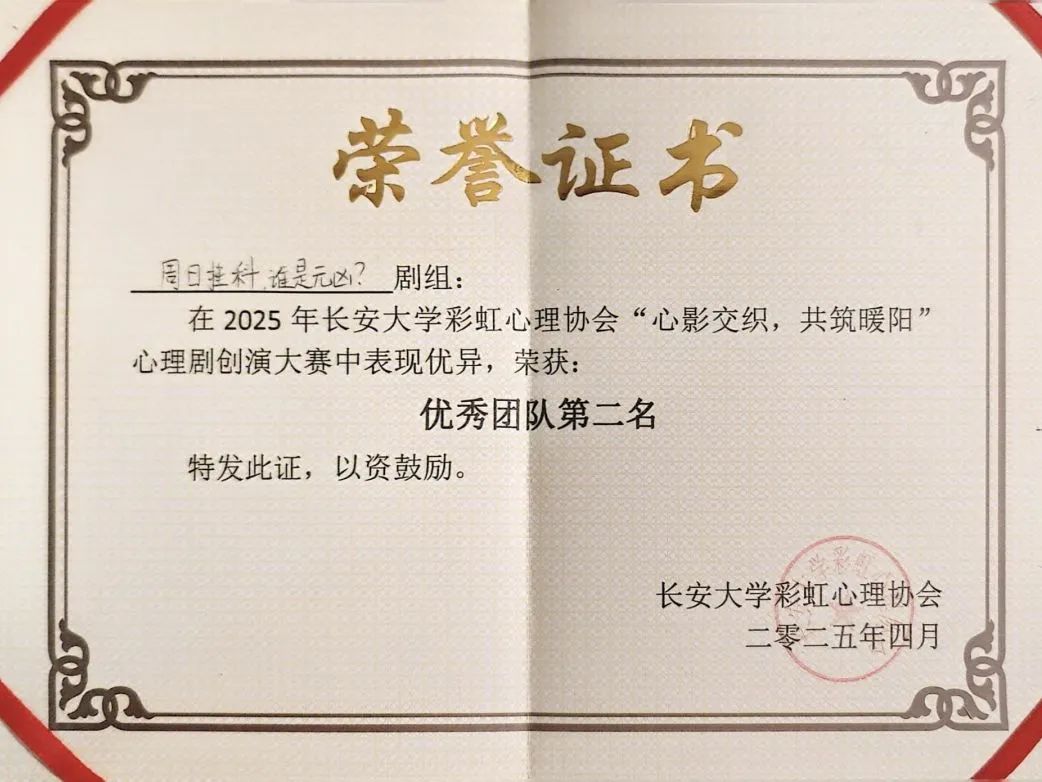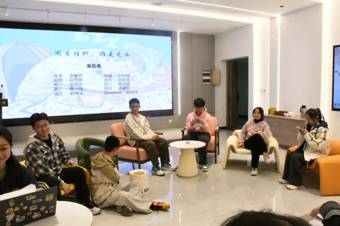 此次心理剧创演大赛,学院高度重视,比赛前期,学院彩虹心理协会统筹组建《周日挂科,谁是元凶》与《猫学长》两支队伍进行准备并均进入复赛。《周日挂科,谁是元凶》通过将抽象的时间具化为人物形象,深入探讨了拖延习惯、责任分配等校园常见问题。《猫学长》以校园中的猫为视角,展现了学生群体关于学业、情感、人际关系等方面的青春困惑与心理特征。