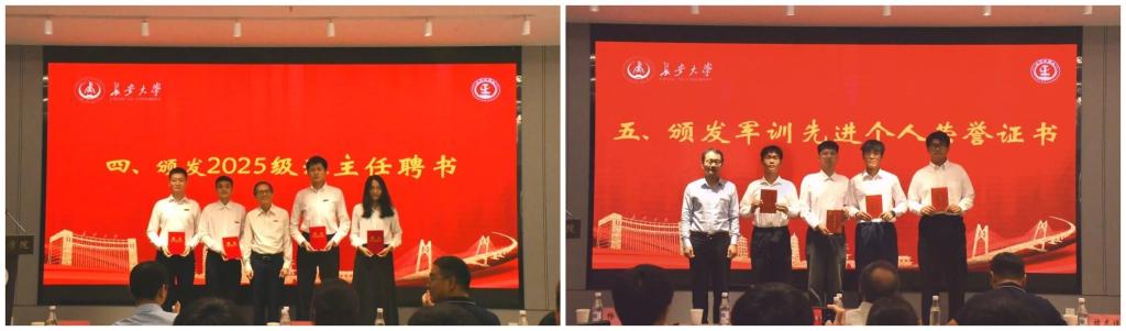 典礼上还为学院2025-2026学年本科生班主任颁发聘书,并为2025级本科生军训先进个人代表颁发荣誉证书。