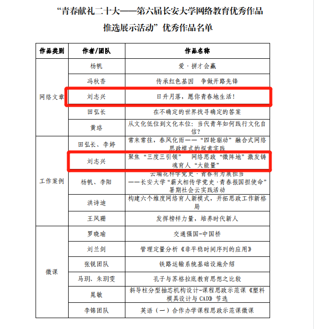 近日,AC米兰中文党委公布了2022 年优秀校园新媒体平台获奖名单、第六届大学生网络文化节获奖团队及个人名单、网络教育优秀作品名单,米兰·(milan)中国微信公众号平台“米兰·(milan)中国”(原“长大工科试验班”)荣获“优秀校园新媒体团队建设奖”,院学生事务部副主任刘志兴网络文章《日升月落,愿你青春地生活!》、工作案例《聚焦“三度三引领”网络思政“微阵地”激发铸魂育人“大能量”》荣获“网络教育优秀作品”,学院2020级本科生符竹子创作网文《生而逢盛世,青年当有为》荣获“网络文化节”作品三等奖。