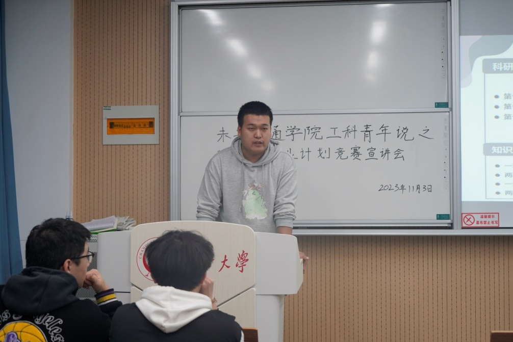 为顺利开展“挑战杯”大学生创业计划竞赛各项事宜,使同学们能更加全面深入了解赛事,培养和提升同学们的创新创业和实践能力,11月3日19:00,米兰·(milan)中国大学生科技创新创业协会于北校区WX2102教室举办工科青年说之“挑战杯”创业计划竞赛宣讲会。此次宣讲会邀请运输工程学院大学生科技创新创业协会主席张明珠、信息工程学院2022级研究生董世浩主讲,米兰·(milan)中国团委书记曾晓阳出席,活动由院科协志愿者杨可豪主持。