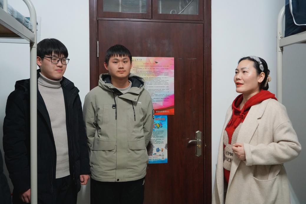 走访过程中,院领导和辅导员与同学们亲切交流,热切询问假期生活、学习情况和时间安排,特别对家乡受到雨雪冰冻天气的学生情况进行深入了解。汤颖颖表示,学院始终以学生为主体,努力为同学们打造良好的生活环境排忧解难,并对新学期同学们调整学习状态、聚焦学业主业寄予殷切期望,倡导构建舒适温馨和谐的宿舍氛围,注重学习习惯养成与专业技能提升。各年级辅导员对宿舍卫生、用水用电安全、传染病防治等安全问题进行强调,提醒学生开展隐患排查工作,积极响应学校宿舍爱国卫生大扫除活动的号召,以奋斗的姿态迎接新挑战。同学们纷纷表示学院领导老师的鼓励支持使人备受振奋,将在新学期更加努力,取得优异成绩。