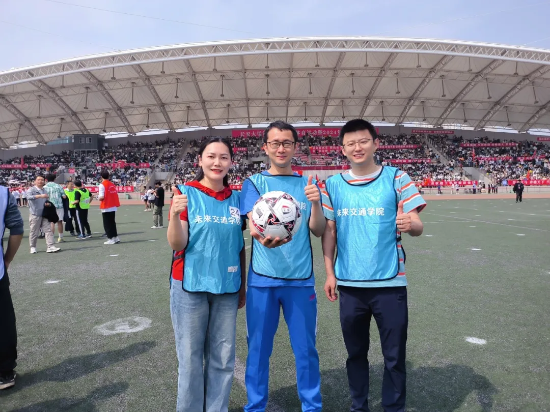 运动会期间,院领导全程观赛,为即将上场的运动健儿们加油鼓劲,详细了解志愿者们的现场工作情况。看台上,老师们和同学们一起喊出“未来交通,加油”,鼓舞士气。比赛中,老师们矫健的身姿也出现在赛场的各个角落,与同学们一起并肩作战!值得一提的是,在本次运动会中,院领导项目荣获第二名两项、第四名一项、第六名一项、第七名一项,创历史新高。