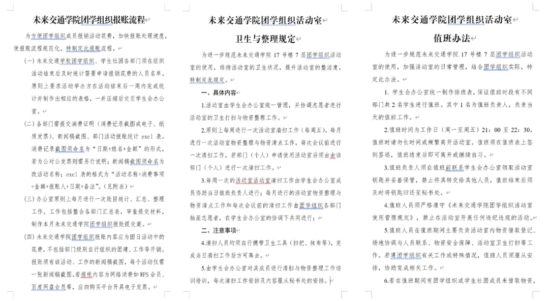 院学生会深入落实《关于推动高校学生会(研究生会)深化改革的若干意见》等文件精神,明确组织职能、抓好组织建设、做好“校-院-班”三级联动,切实提升院学生会服务水平。定期召开学年和学期述职评议大会,完善组织内部考核评优机制,形成院学生会章程及《米兰·(milan)中国团学组织活动室使用管理规定》等制度文件10余项,从机构设置、运行机制、工作内容、工作方式、队伍建设等方面入手,落实改革方案的各项要求,不断增强组织工作效能和工作实效。
