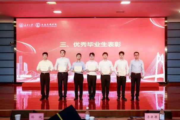 执行院长孙健宣读优秀毕业生表彰名单并为优秀毕业生颁奖。希望全体毕业生向榜样学习、向先进看齐,怀抱梦想、脚踏实地,争做有理想、敢担当、能吃苦、肯奋斗的新时代好青年,为强国建设、民族复兴伟业贡献青春力量。