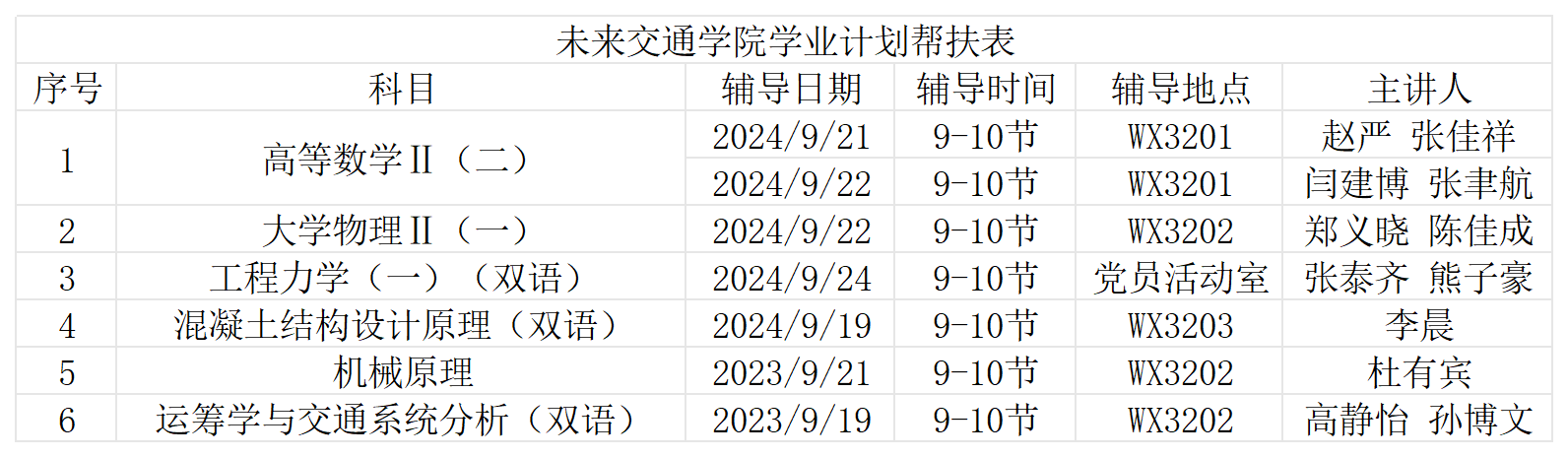 对于2023级课程,学业帮扶志愿者围绕《高等数学Ⅱ(二)》、《大学物理Ⅱ(一)》和《工程力学(一)(双语)》进行课程辅导,以主干知识梳理和重难习题讲解相结合的形式,带领同学理解知识点内在关联,明晰了专业知识中的易混淆概念。