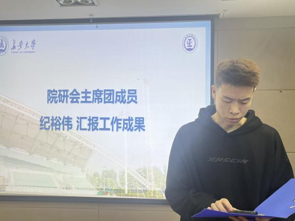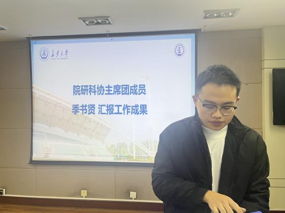 院研会主席团成员纪裕伟与院研科协主席团成员季书贤汇报了本学期计划开展的工作,在响应学校号召积极开展日常工作的同时,将策划学院特色活动,活动涉及学生日常科研与学习生活,旨在落实全心全意服务同学的根本要求,打造优秀研究生会与优秀研究生科学技术协会。