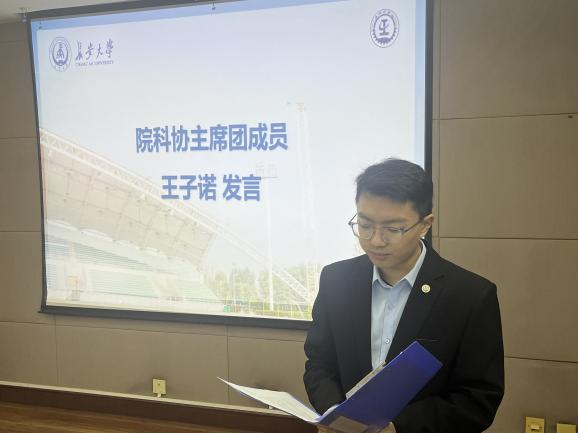 院研科协主席团成员王子诺系统梳理了协会成立以来的工作进展,指出在活动流程规范、团队协作机制等方面存在的不足,并围绕“虹学讲堂”“博士论坛”等品牌活动进行详细计划,此外将联动校院资源推进研究生摄影大赛、科技成果展等赛事筹备,为我院学子搭建科研竞技舞台。