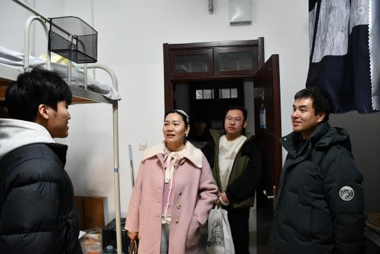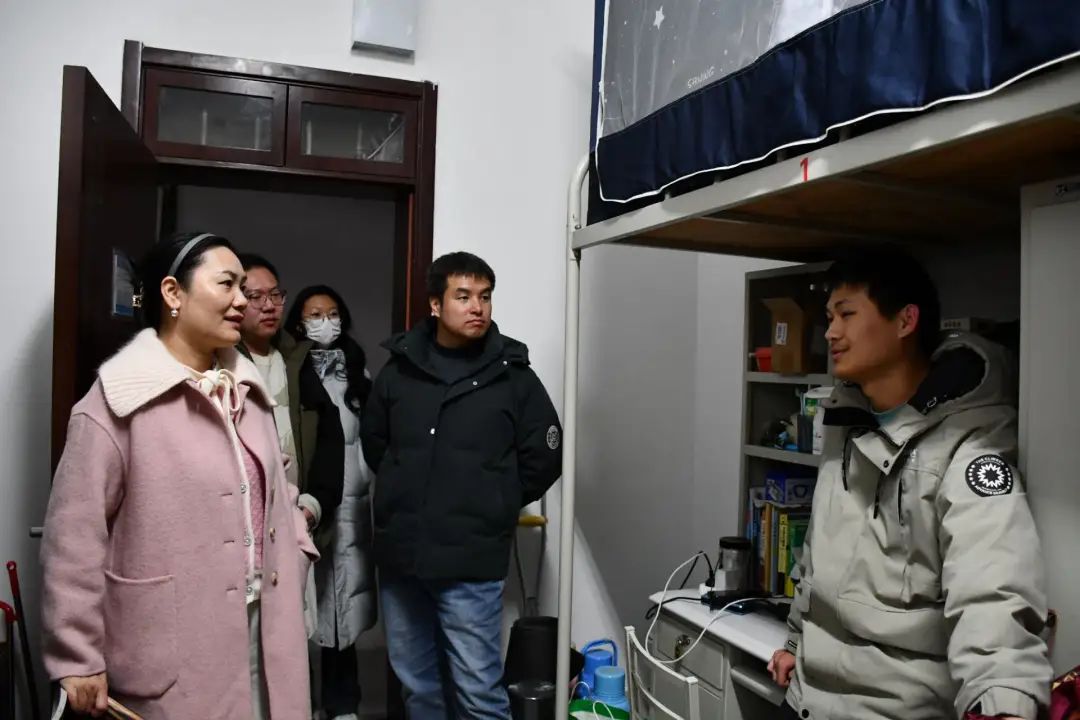 走访过程中,院领导和辅导员们悉心了解了同学们的假期生活、对宿舍卫生与安全情况进行细致检查,师生热切讨论了课程安排和新学期的规划。汤颖颖表示,学院始终以学生为本,宿舍是学生在校期间的港湾,也是开展思想政治教育的重要阵地,学院将持续为学生排忧解难,希望通过走访及时发现并解决同学们的实际困难,并对同学们新学期的学习生活和综合能力提升表示期待。针对部分同学反映的生活迷茫、学习压力等问题,老师们耐心倾听并一一给予有效建议。