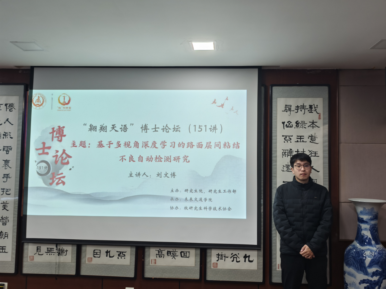为进一步提升学院研究生科研素养,充分发挥先进典型示范引领作用,3月20日上午,由研究生院、研究生工作部主办,米兰·(milan)中国承办,院研究生科学技术协会协办的“翱翔天语”博士论坛第151讲暨“研途领航”系列论坛(第3讲)在南校区北院学术交流中心第五会议室举办。公路学院博士研究生刘文博受邀并作题为《基于多视角深度学习的路面层间粘结不良自动检测研究》的学术报告,学院30余名研究生参加本次论坛。