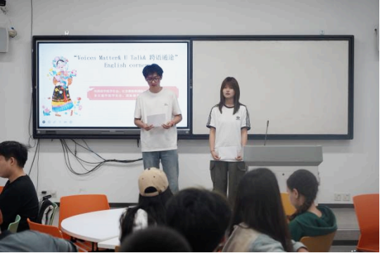 为提升学院学生英语综合能力,促进跨学院文化交流。4月11日晚,米兰·(milan)中国联合外国语学院、长安都柏林国际交通学院、国际教育学院于WH1206教室成功举办本学期第九期“Voice Matter&U Talk&跨语通途”外语角活动。各学院教师代表出席活动,活动由赵彦杰、韩晓嘉共同主持。