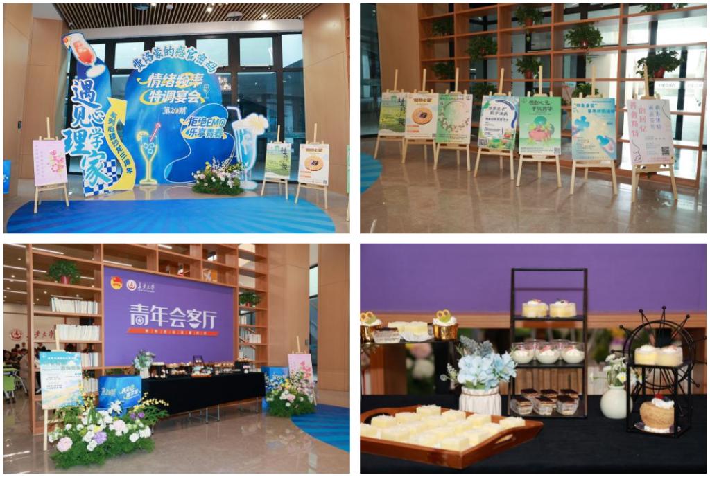 活动现场,往期“遇见心理学家”系列心理沙龙海报依次陈列,温馨茶歇区与主题打卡区引人驻足。现场师生彼此敞开心扉、交流鼓励,享受着这场自我觉察与社交互动的心理沙龙。