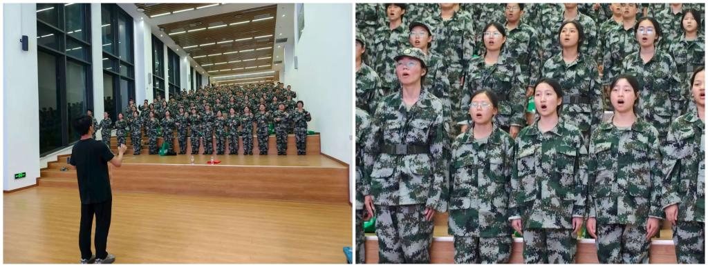 军训期间,合唱团成员以饱满热情放声高唱,嘹亮歌声传递对祖国的炽热深情,激荡青春热血,彰显集体荣光,激励着我们为强国梦想奋勇前进。