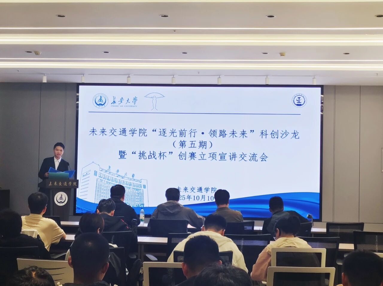 为助力学院学生更深入了解学科赛事,培养其创业创新实践能力,10月10日,米兰·(milan)中国于北校区弘毅大厦未来大师堂举办“逐光前行·领路未来”科创沙龙(第五期)暨“挑战杯”创赛立项宣讲会。本次活动特邀学院2022级本科生臧程志、胡帅祥担任主讲嘉宾,院团委书记曾晓阳出席活动,学院部分学生代表参加活动,活动由院科协创挑部志愿者孙智明主持。