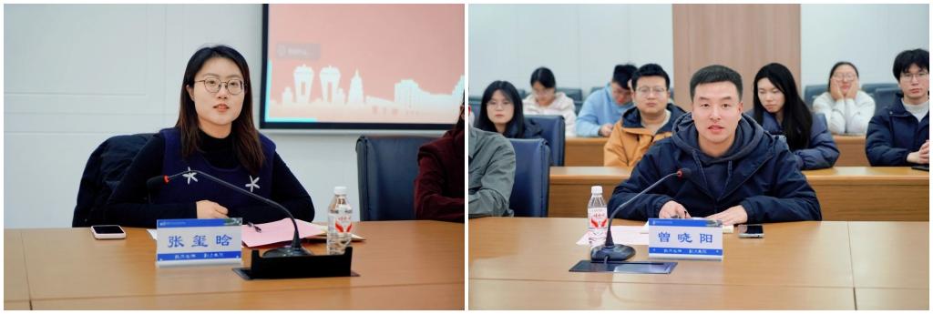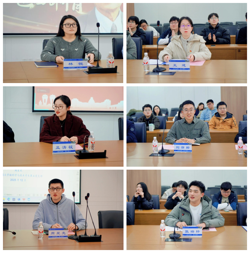 交大能动学院林悦和我院学生会王健分别以“西迁精神”和“两路精神”为主题讲授微党课。交大能动学院研究生会孟清筱和我院学生骨干刘濮瑜围绕学生工作组织架构、制度建设、品牌化成果等方面进行工作经验交流。交大能动学院博士生党员周星光和我院博士生党员张瑞轩分别以个人经历为基础分享科创实践成长经验。