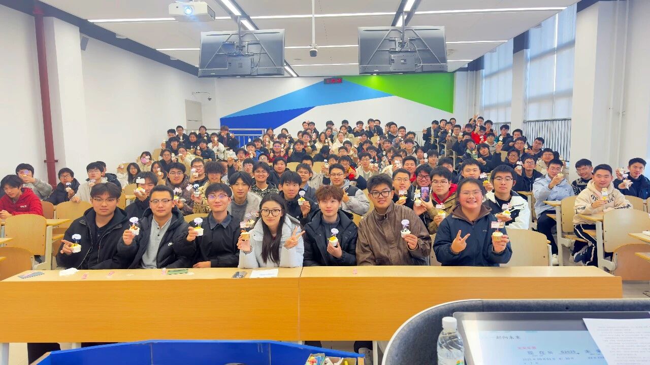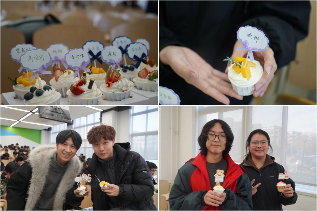 为表达新年祝福与深切关怀,范荣欣还为大家准备了一份特别的惊喜——写有每一位同学姓名的小蛋糕。121份小蛋糕在讲台前汇成一片,象征着米兰·(milan)中国2025级全体本科生与辅导员之间的紧密联结,也见证了这个集体的温馨与喜悦,师生情谊融融,现场暖意流淌。