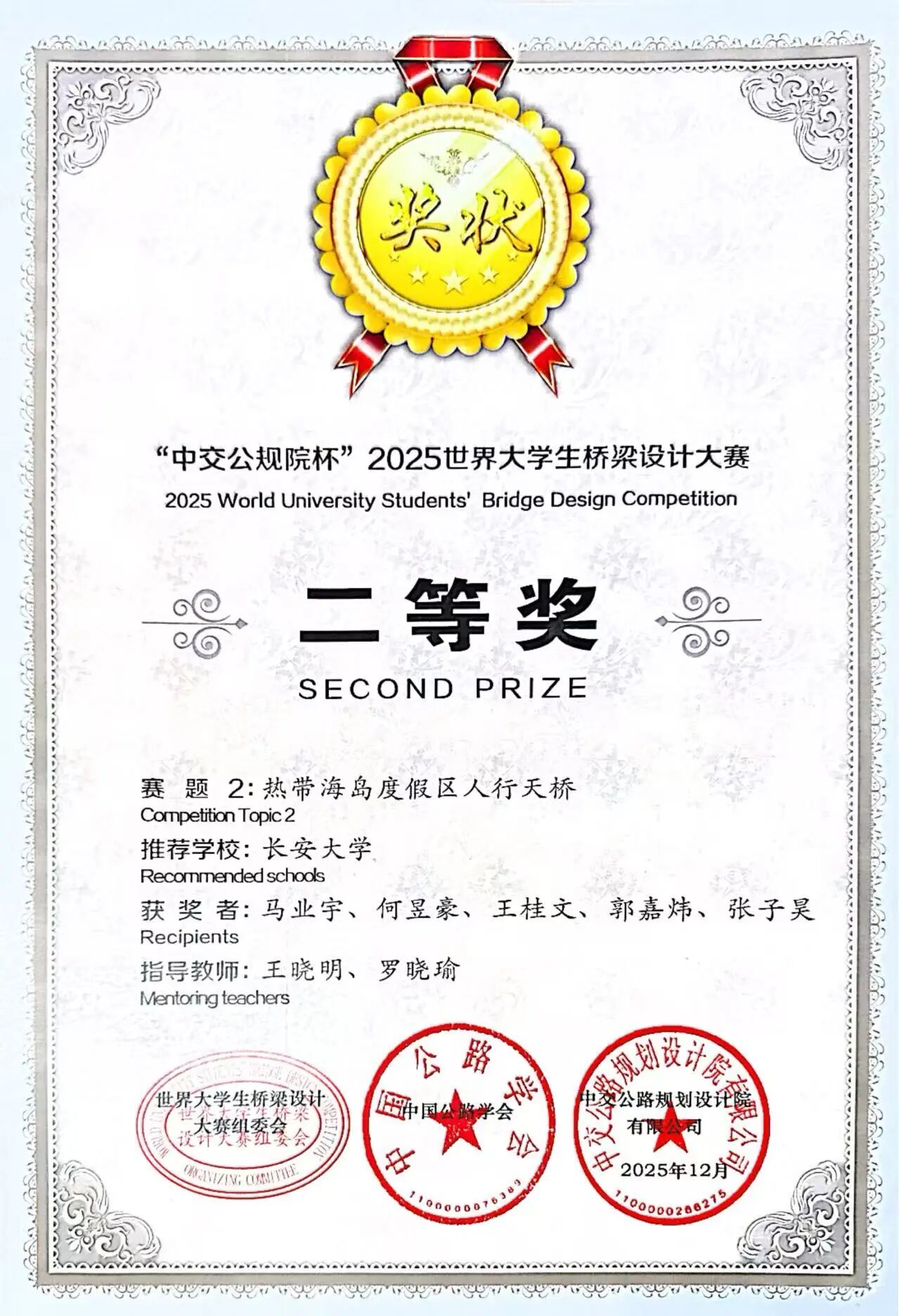 这一佳绩不仅体现了学院学子在桥梁设计专业领域勇于探索、敢于突破的进取精神,更充分彰显了学院复合型人才培养模式的创新成效与实践价值。