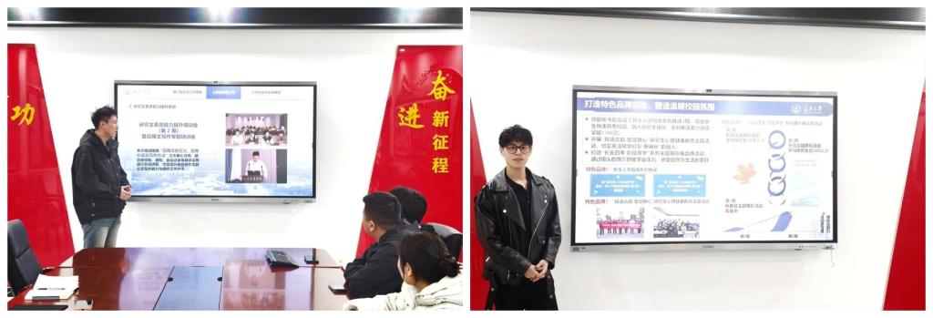 谢皓扬围绕公路学院研究生会的组织架构、特色活动开展、日常工作推进等方面展开详细介绍。他分享了公路学院研究生会在党团建设、研究生权益保障等工作中的实践经验与有效举措,结合跨学院联谊活动、本研联合体育运动赛事等具体案例,从活动策划到工作推进,介绍了如何在研究生群体中做到“务实服务、精准发力”,为两院研会工作提供了宝贵参考。